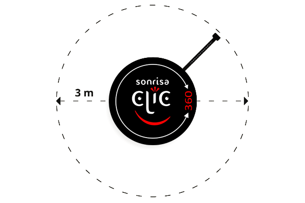 El videomatón360 necesita un espacio mínimo requerido de 3 m2 más 0,5 m2 para la estación de descarga. El espacio recomendado es de 4 m2 .
